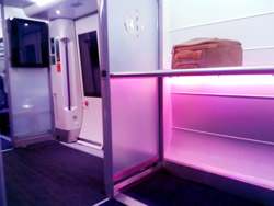Ich entschiede mich daher für den Heathrow Express und folge der verführerischen Beschilderung. Zwei freundliche Mitarbeiter nehmen mich am Eingang des Zuges in Empfang und ich betrete ehrfürchtig den mit Teppich ausgelegten Hightechzug. Moderne Abteile mit extra Ablagefächern für die Koffer der Reisenden lassen mich das erste Mal staunen, große saubere Fenster, nicht ein Krümelchen liegt auf dem Boden, die Sitze im gleichen Lila gehalten wie der Rest. Die Bildschirme, die gefühlt an jeder Abteilwand hängen, geben mir schon jetzt das Gefühl ‚“ich bin in der Zukunft“, auch wenn sie nicht in Betrieb sind. Jeder findet einen Platz, Ruhe liegt in der gut klimatisierten Luft und mein Roaming wurde auch eben aktiviert, ich bin wieder online! Leider hält das Gefühl nicht lange an, die überaus freundliche Schaffnerin will doch tatsächlich 40 Pfund für die Hin- und Rückfahrt von mir haben. Kreditkarte sei Dank, verdränge ich heftig den Gedanken daran, dass ich in meiner ersten Stunde auf dem Eiland bereits 60 Euro für ein Zugticket hingeblättert habe und ich damit nur ein Stück zu meinem Ziel Piccadilly Circus vorgedrungen bin.