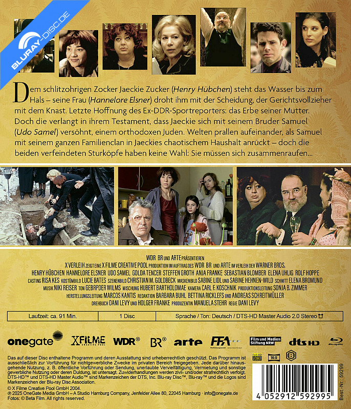 Der frühere Sport-Journalist Jaeckie Zucker (H. Hübchen) erhält die Nachricht vom Tod seiner Mutter, die in ihrem Testament bestimmt hat, nach streng jüdischer Tradition in Berlin beerdigt zu werden, zu einem denkbar ungünstigen Zeitpunkt. Nicht nur, da der Arbeitslose in finanziellen Schwierigkeiten steckt, sondern auch deshalb, weil er sich überhaupt nicht mehr mit dem jüdischen Glauben identifiziert. Zum allem Überfluss soll er das Begräbnis auch noch mit seinem strenggläubigen Bruder Samuel (U. Samel) durchführen, mit dem er seit 40 Jahren zerstritten ist und der mit seiner Familie in Los Angeles lebt. Das Erbe bekommen die beiden aber anschließend nur gemeinsam – oder gar nicht … Alles auf Zucker! Blu-ray Preisvergleich