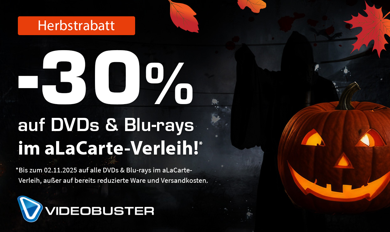 Videobuster.de hat eine neue Aktion für Neu- und Bestandskunden gestartet. Sie erhalten ab sofort 30% Rabatt auf alle Blu-ray Discs und DVDs im aLaCarte-Verleih – perfekt um sich mit entsprechenden Filmen für den Halloweenabend einzudecken. Es ist kein Gutscheincode erforderlich, um das Angebot zu nutzen. Der Preisnachlass gilt jedoch nicht für die Versandkosten und bereits reduzierte Ware. Die Rabattaktion ist bis einschließlich Sonntag, den 2. November 2025 gültig. (sw)