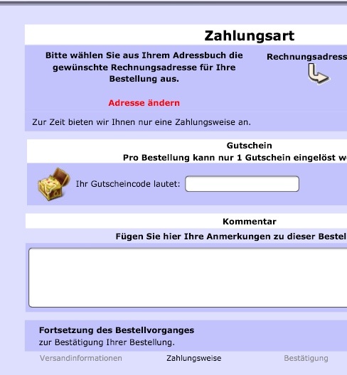hatte sie im Warenkorb und als Zahlungsmethoden gab es