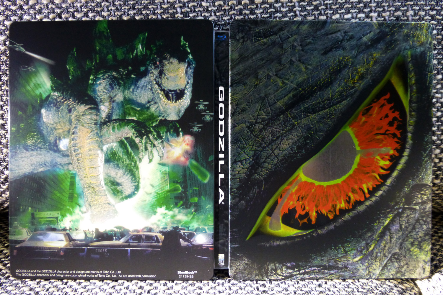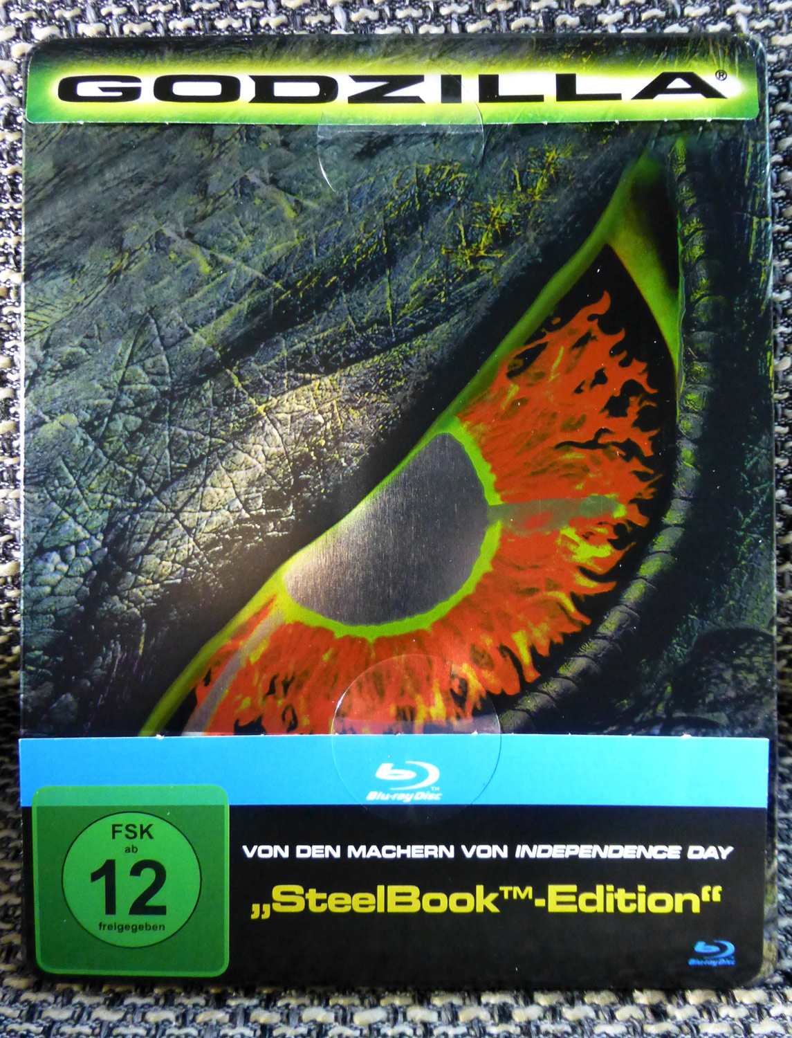 Blaue Balken auf einem Steelbook