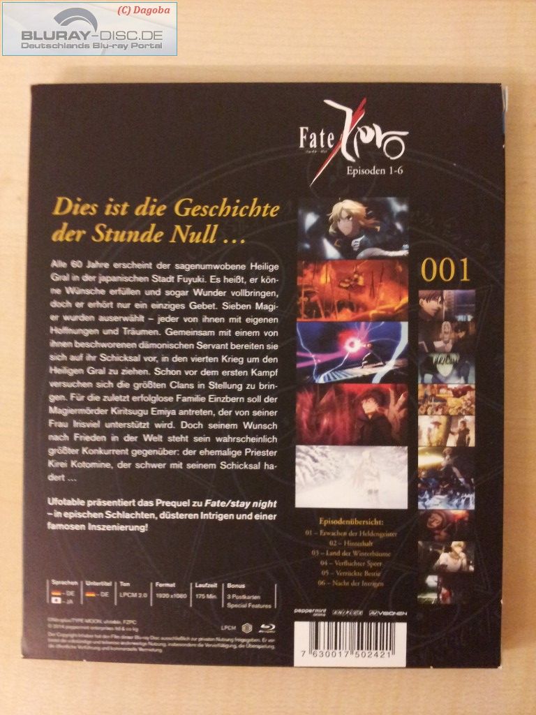 Am 28.02.2014 ist über Peppermint Anime das erste Volume von Fate/Zero erschienen.