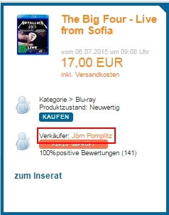 Auf dem Angebot klicke ich auf "Verkäufer: Jörn..." --> es
