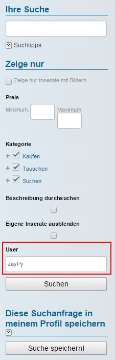 nach dem "User" Anstatt dem "Verkäufer(namen)" gesucht wird.