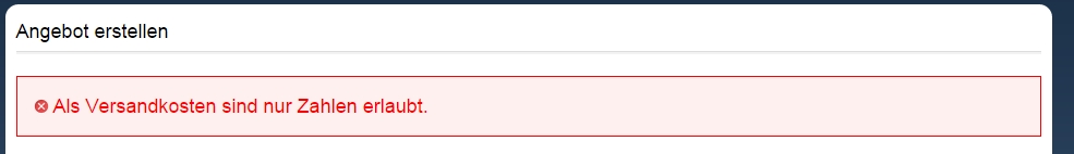 Bei den Versandkosten sind nun nur noch Zahlen möglich. Auch für