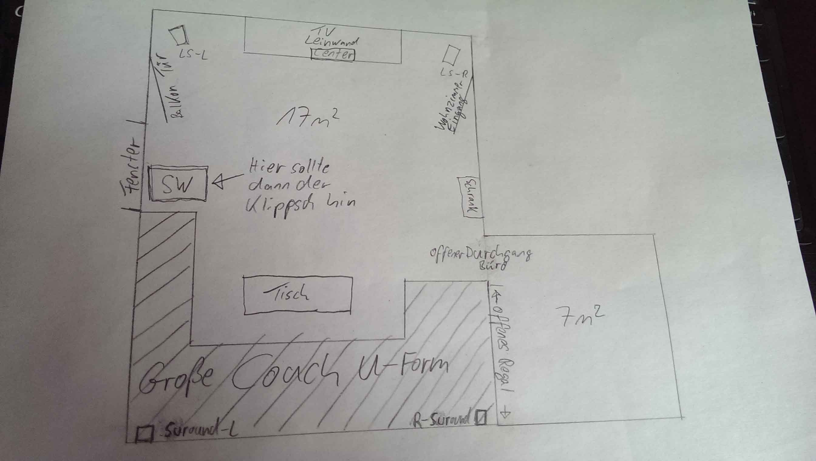 Ich vermisse die Raummaße auf der Zeichnung.