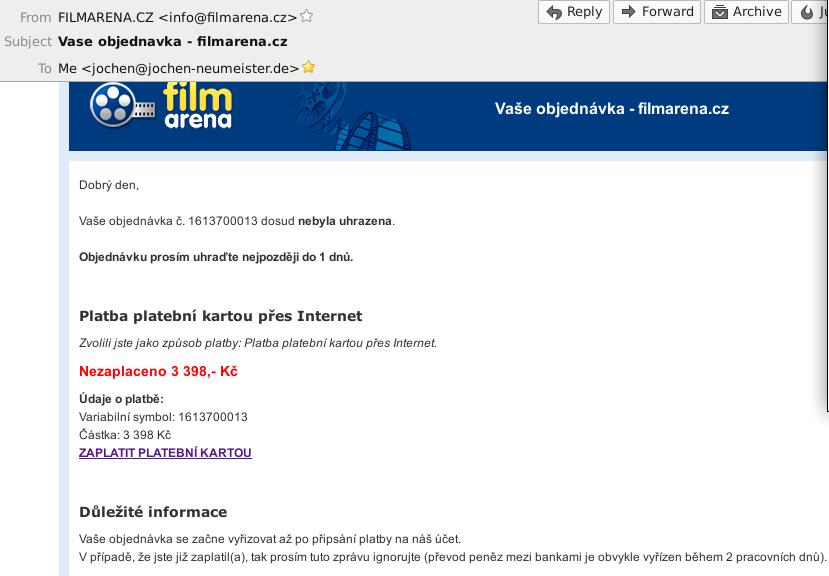 Wie ich eben in meinen eMails sehen konnte, wäre nun ein Exemplar