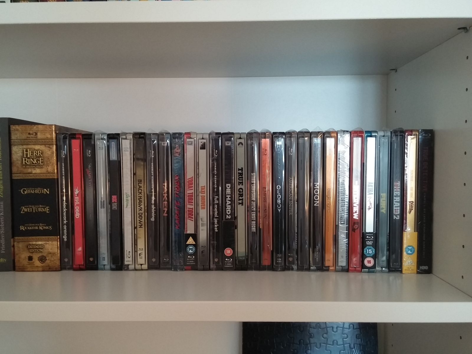 Steelbooks in den Regalen etwas verloren und willkürlich angeordnet