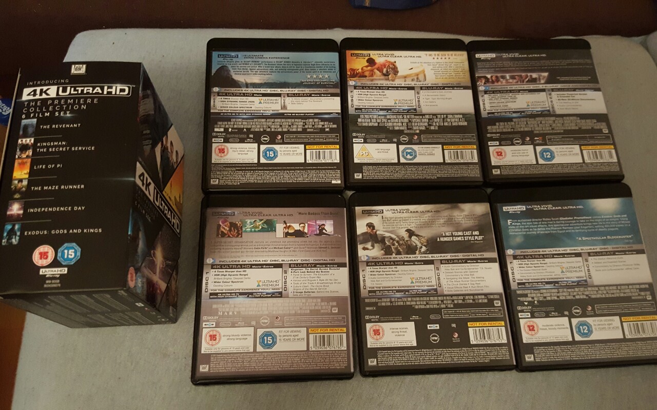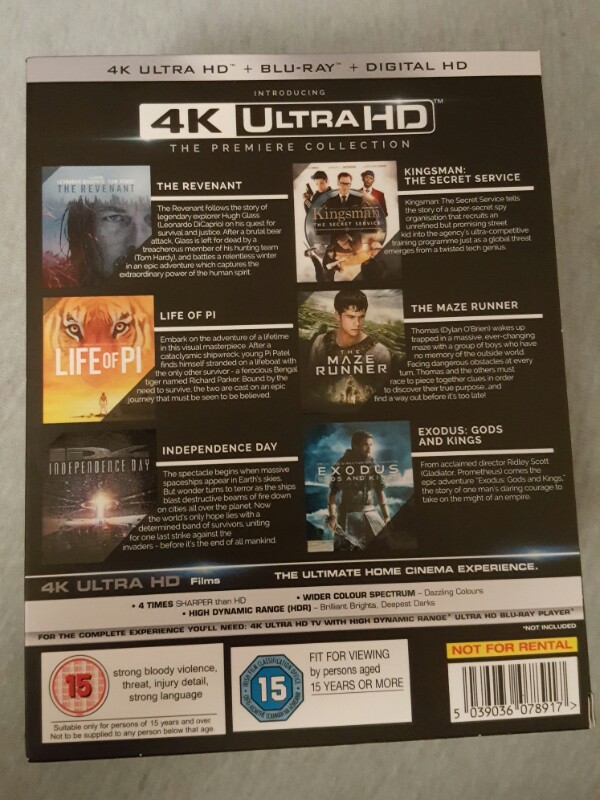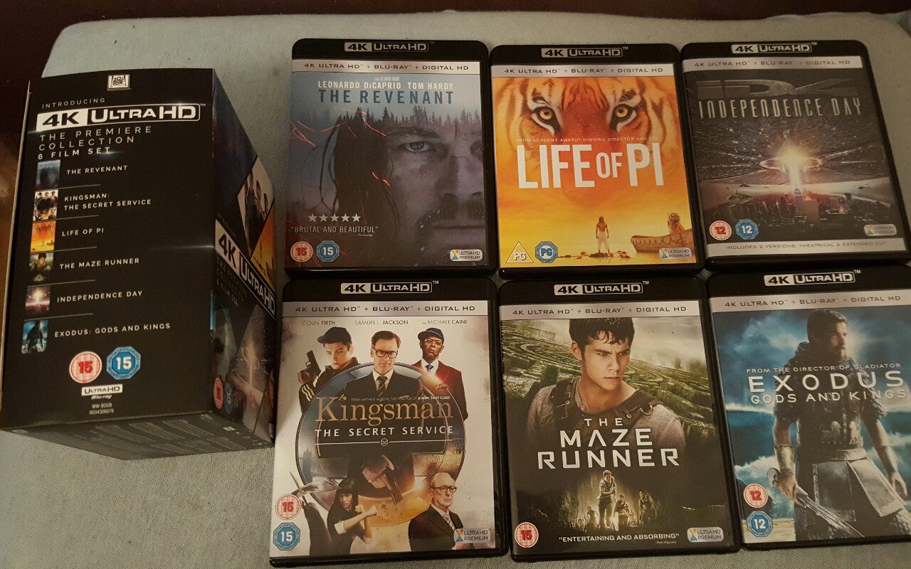 Box mit 4k Filmen wie Maze runner 2, Independence Day Resurgence
