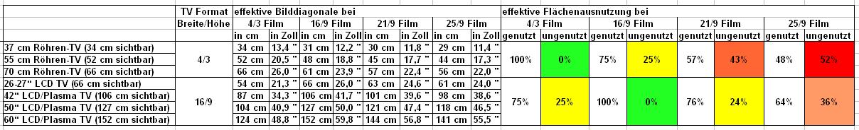 Zu 4/3 TV Zeiten bewegte sich der Bildverlust zwischen 0 und 43 %