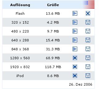 auch HD das ganze im *.mov Format (also Appel)