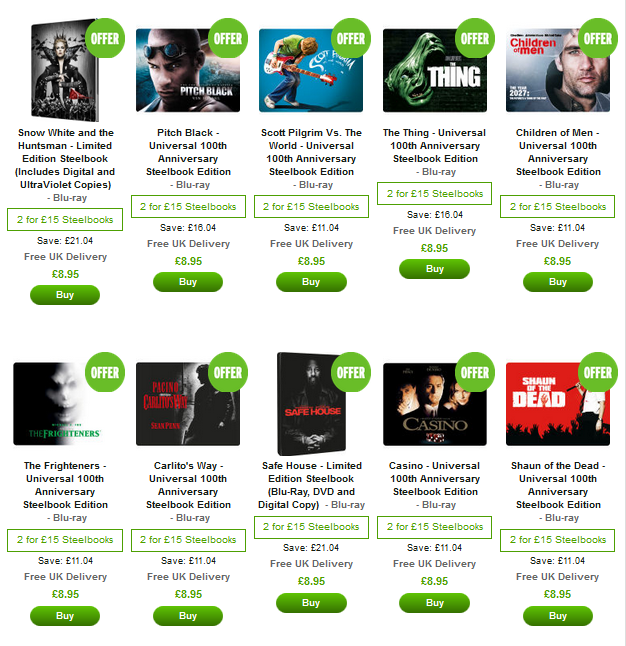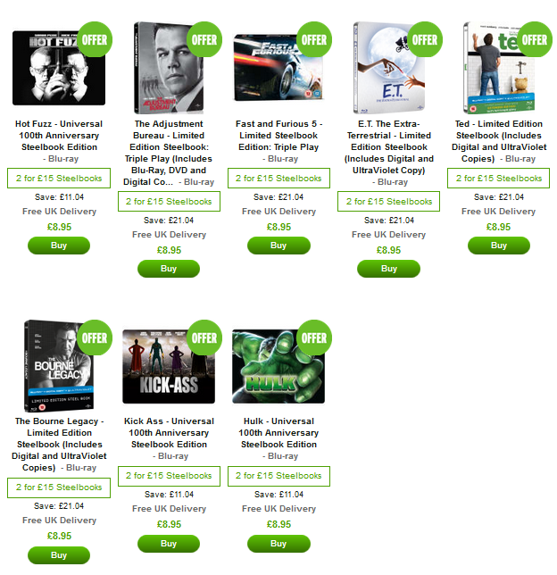 2 for £15 Steelbooks