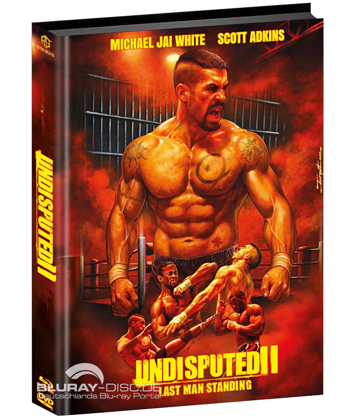 Wie wir berichteten, legt der Retro Gold 63 Filmvertrieb "Undisputed II: Last Man Standing" (USA 2006) erneut in High Definition auf. Das unter der Regie von Isaac Florentine entstandene Action-Drama mit Michael Jai White und Scott Adkins in den Hauptrollen kommt neuen Angaben zufolge am 23. März 2026 exklusiv im Onlineshop des Independents auf Blu-ray im limitierten Mediabook inklusive eines 24-seitigen Booklets von Van Davidator und zwei DVDs mit vier Cover-Motiven heraus. Es werden eine unwattierte und drei wattierte Varianten zum Kauf angeboten. Wie bei der Erstauflage liegt der Streifen auf Deutsch und auf Englisch in DTS-HD Master Audio 5.1 vor. Neben dem bekannten Making-of umfasst das Bonusmaterial noch ein neues Interview mit dem Regisseur auf DVD. Der Vorverkauf der Sondereditionen startet Sonntag, den 14. Dezember 2025 um 19 Uhr im Retro Gold 63 Shop.