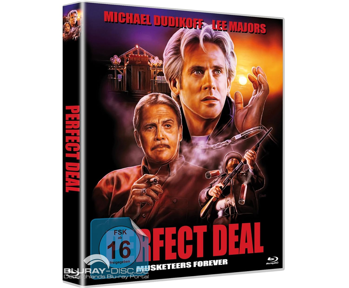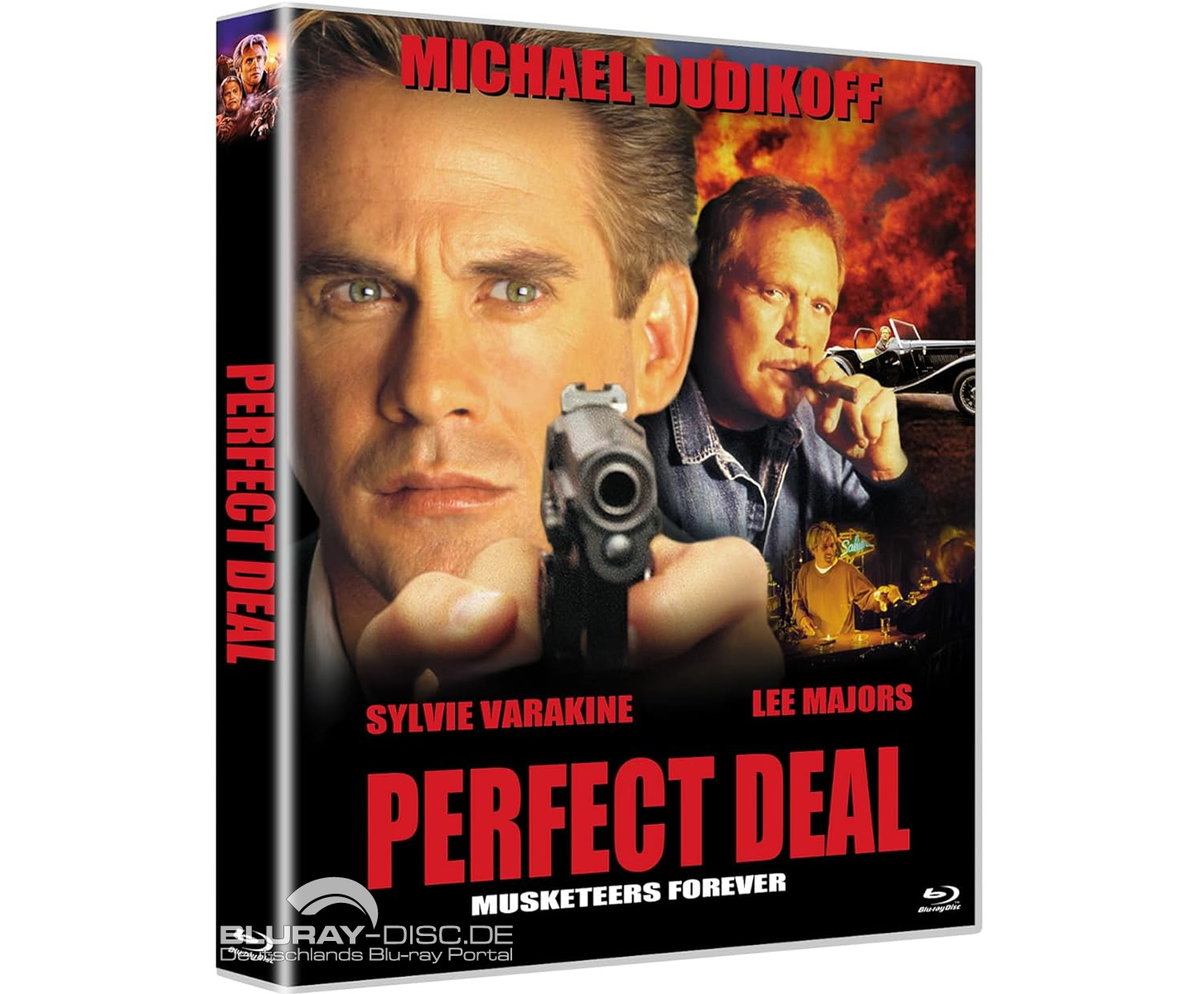 Schon vor drei Jahren berichteten wir darüber, dass Fokus Media den von Georges Chamchoum inszenierten Actionfilm "Perfect Deal" (USA, Kanada 1998; OT: "Musketeers Forever") mit Michael Dudikoff und Lee Majors in 4K gescannt hat und in Zusammenarbeit mit Shamrock Media erstmals auf Blu-ray Disc herausbringt. Wie nun endlich bekannt ist, kommt die HD-Premiere am 6. März 2026 in einer Scanavo-Style-Hülle mit abziehbarem FSK-Sticker und Wendecover mit alternativem Artwork auf den Markt. Technische und inhaltliche Details stehen zwar noch aus, dafür ist "Perfect Deal" bereits auf Blu-ray vorbestellbar. (sw)