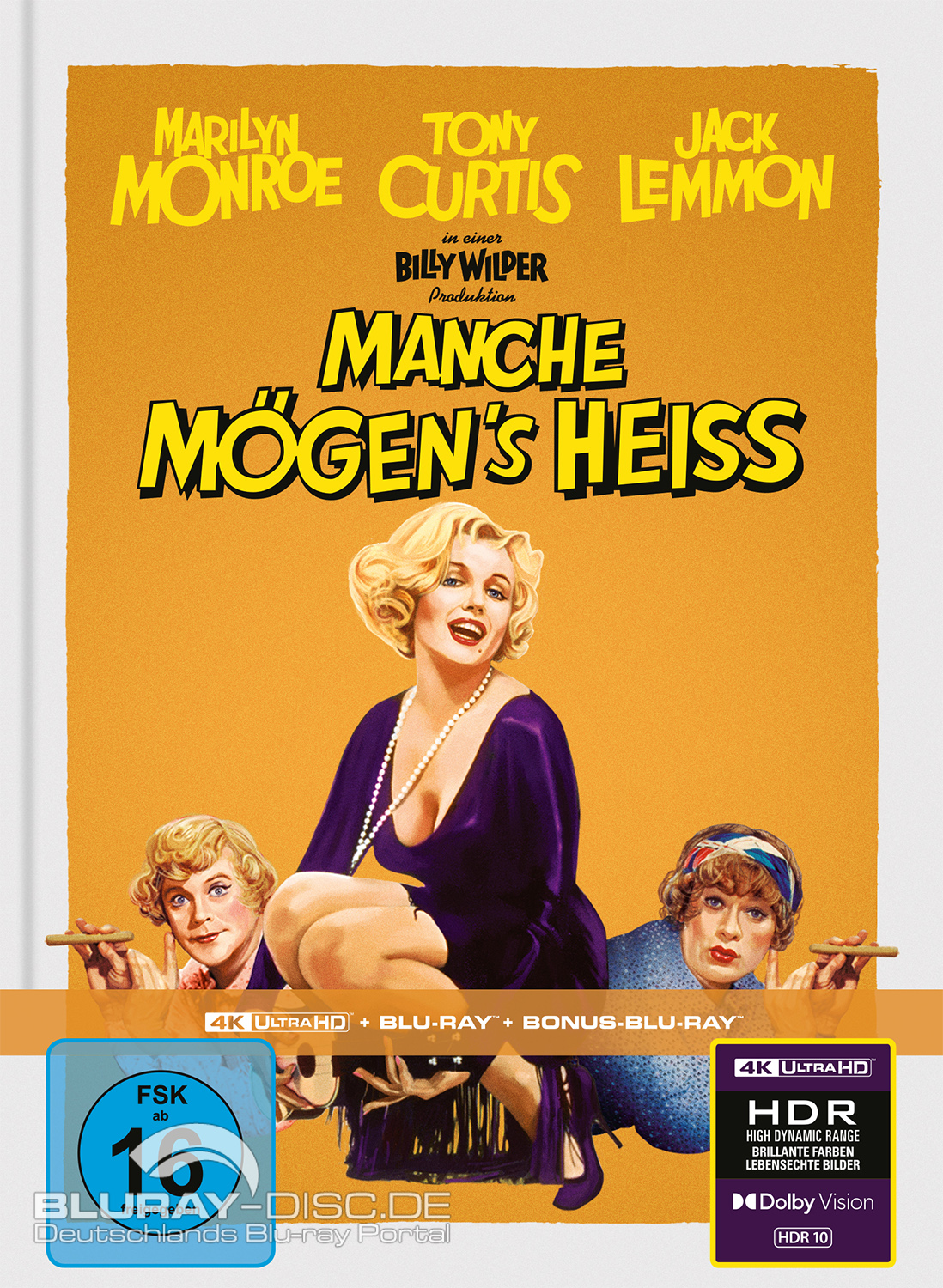 Ende November kündigte Independent Capelight Pictures im Rahmen seiner "7 Tage, 7 News"-Reihe in den sozialen Medien an, zum ersten Mal in Europa die mit Marilyn Monroe, Tony Curtis und Jack Lemmon in tragenden Rollen besetzte Komödie "Manche mögen’s heiß" (USA 1959; OT: "Some Like It Hot") von Billy Wilder auf Ultra HD Blu-ray herauszubringen. Die UHD-Premiere wird, wie das Unternehmen aus Ahrensfelde am 20. Tag seines Adventkalenders bekanntgab, inklusive HDR10 und Dolby Vision in einer limitierten Mediabook-Edition mit Blu-ray, Bonus-Disc und Booklet von Kathrin Horster zum Kauf angeboten. Die deutschen und englischen Tonspuren erklingen in DTS-HD Master Audio 5.1 und LPCM 2.0. An Extras sind neben Trailern und einem Audiokommentar, das unter anderem aus Archivmaterial besteht, noch ein Making-of sowie "Die Legende von MANCHE MÖGEN’S HEISS", "Nostalgischer Rückblick", "Die Sweet Sues erinnern sich" und "Virtuelle Galerie der Erinnerungen" auf der zweiten Blu-ray Disc enthalten. Außerdem stehen deutsche und englische Untertitel zur Verfügung. Am 20. Tag des Adventskalenders von Capelight Pictures wurde nun die Vorbestellung des 4K-Mediabooks freigegeben. Nur am heutigen Samstag, den 20. Dezember 2025 gibt es die Sonderedition sogar zum Vorzugspreis von 32,95€ statt für 37,99€. Die Veröffentlichung wird am 30. April 2026 erfolgen. Vorerst kann das 4K-Mediabook exklusiv nur im Capelight Pictures Shop und im Alive Shop bestellt werden.