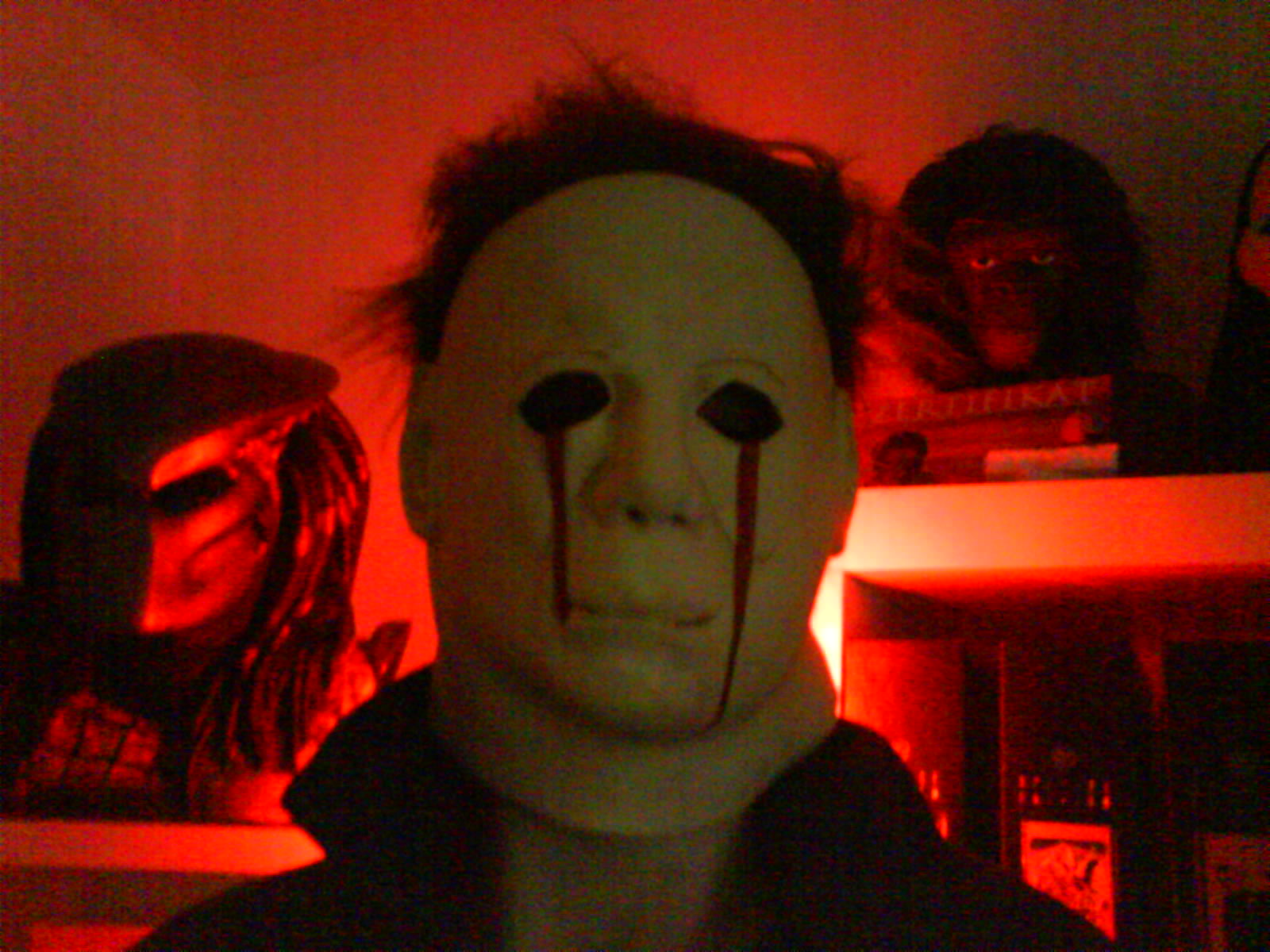vor die Augen wie in Teil 2 zu bemalen (Blut läuft aus den Augen) und mit rotem Lack zu versehen aber