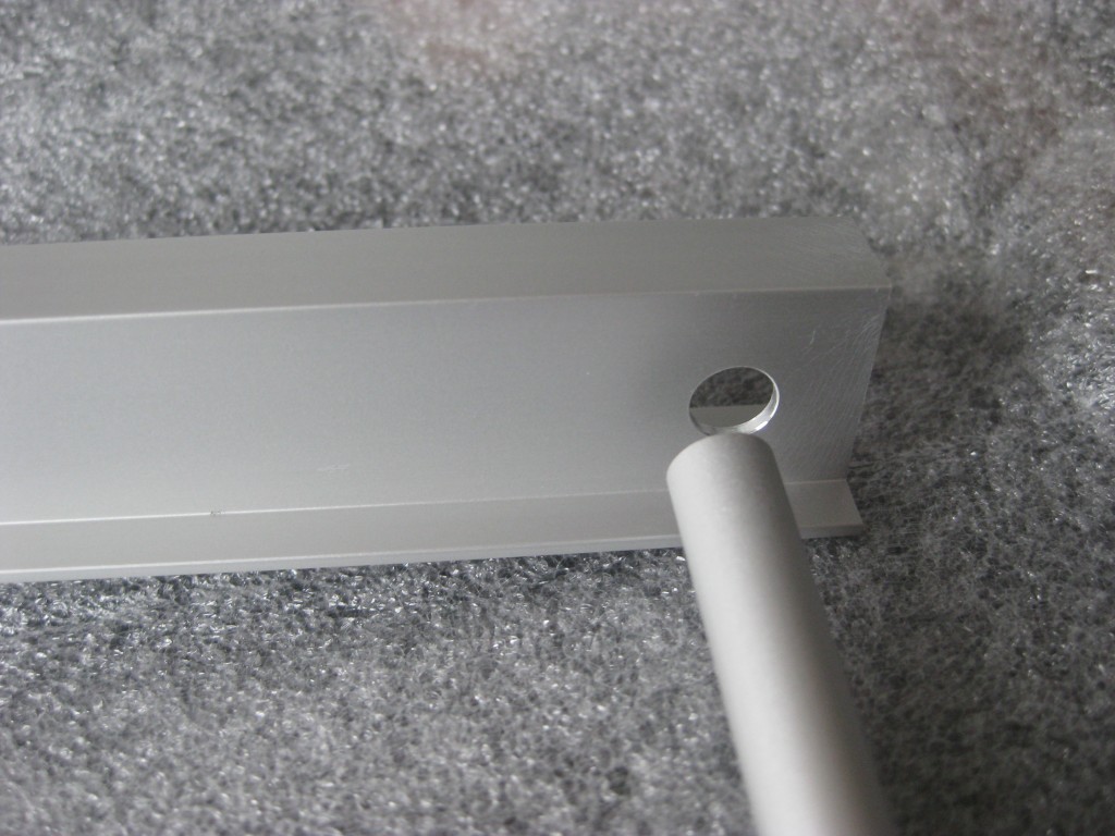 An die unterste Schiene kommt links/rechts die Alu-Stange ohne Verbindungsschraube.