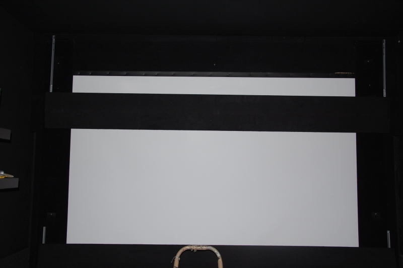 4. Maskierungsbretter vor die Leinwand montiert.