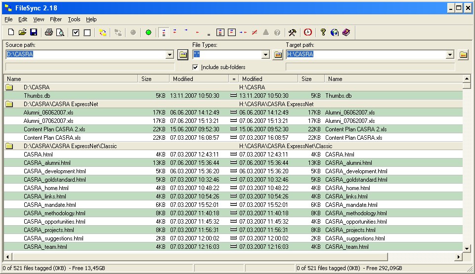 Um ehrlich zu sein, hatte es aber schon ein paar Problemchen im Terrabytezeitalter. Verzeichnissebäume mit sechstelligen Dateianzahlen hat es nicht sauber angezeigt, da wurden nur dann alle Dateien mitgenommen wenn ich aus der blauen oder roten Ansicht synchronisiert habe...