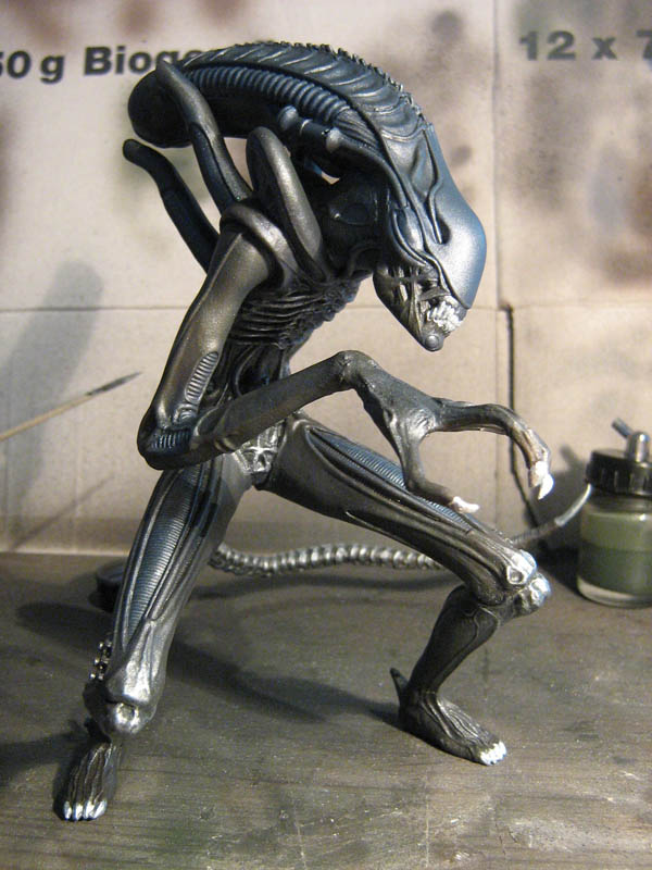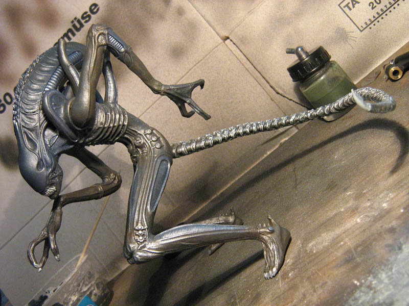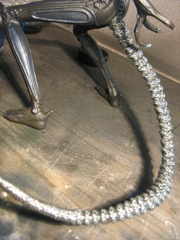 Drybrush mit Silber was man sehr gut am Schwanz und den Knien