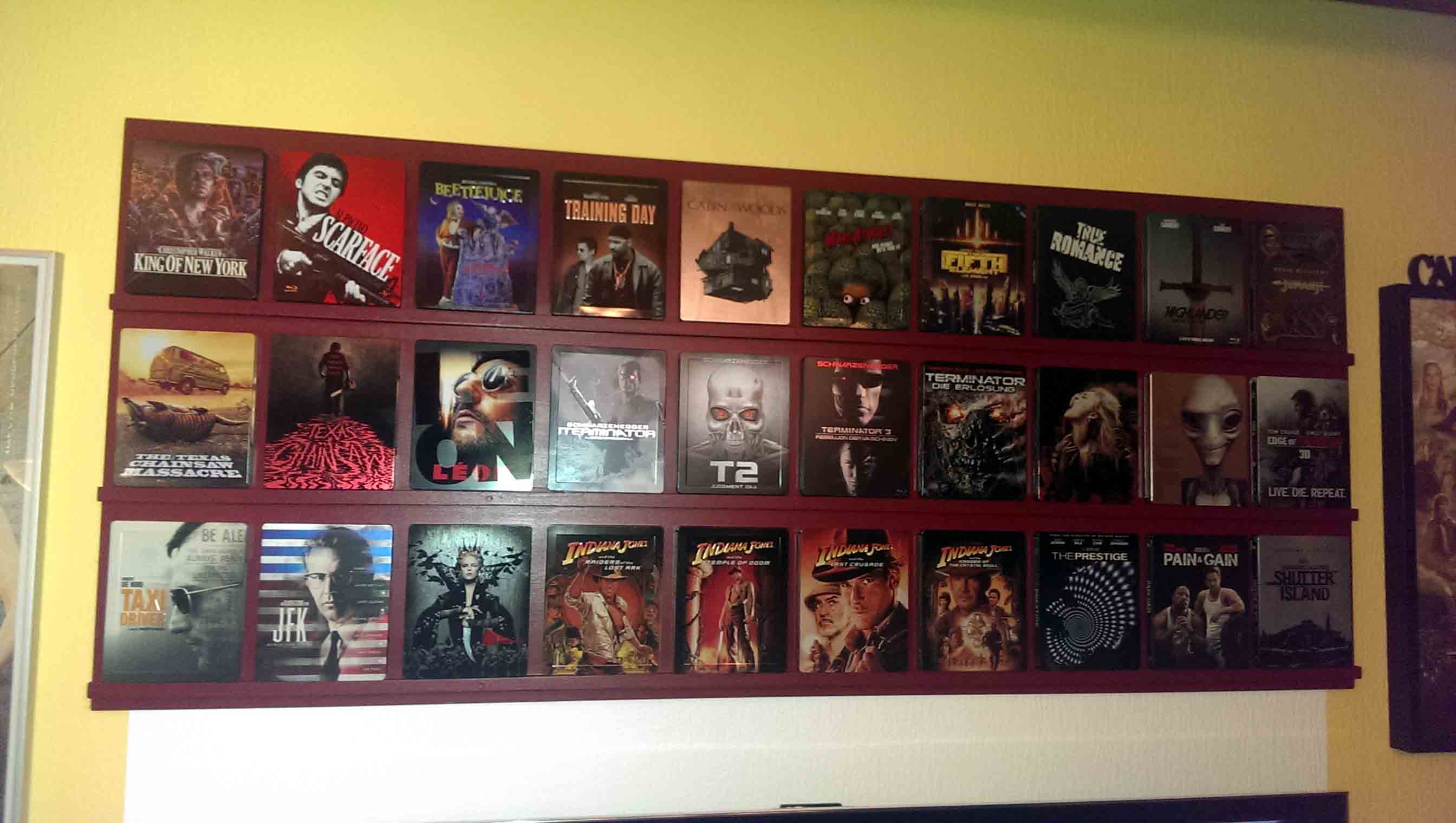 Die Steelbooks stehen jeweils auf einer schmalen Leiste und