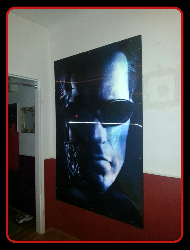 Ein 3D lenticular kinobanner von terminator 3 mit der grösse von