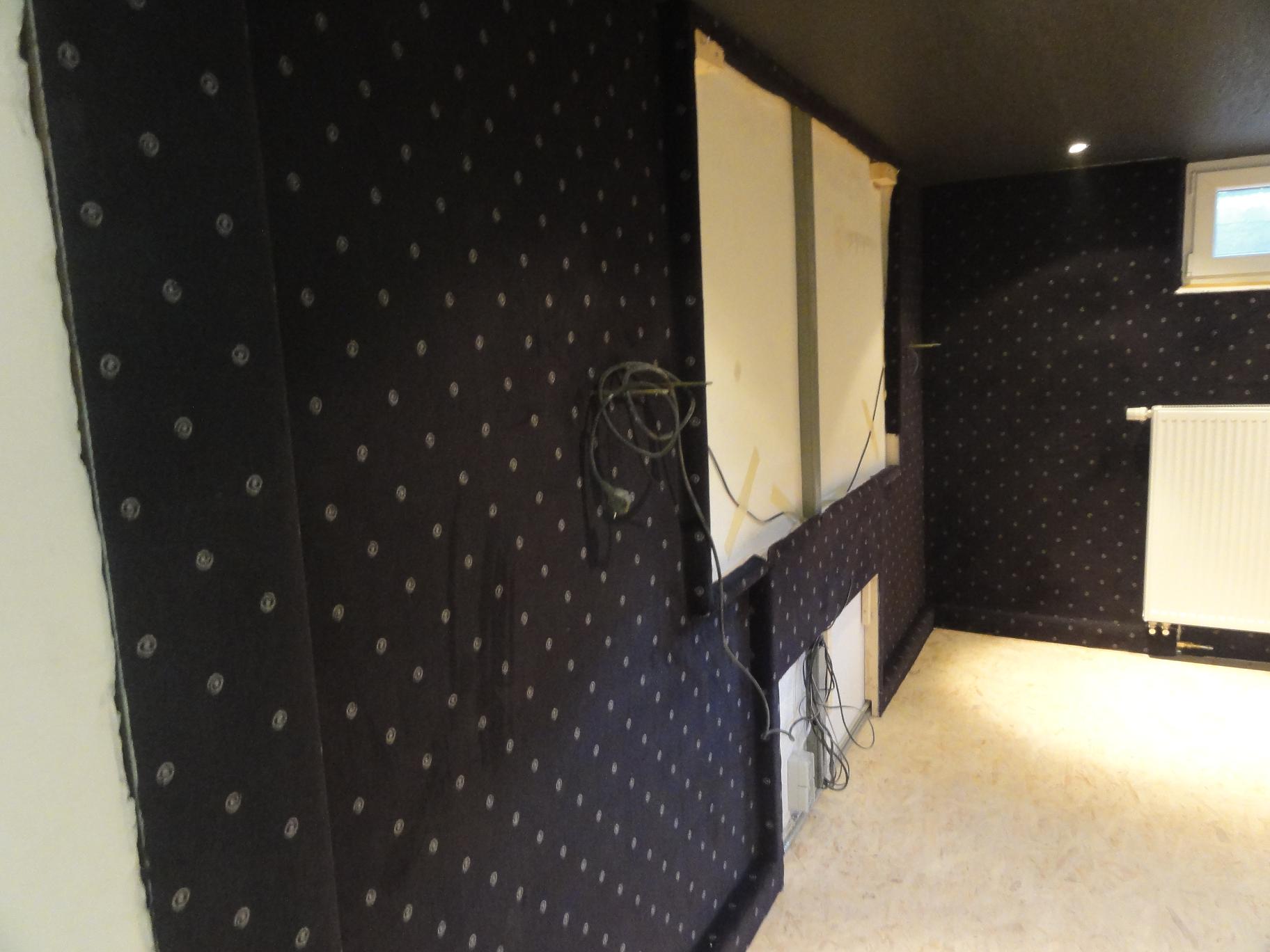 32m2 schwarzer Teppich für die Wand und 16m2 für den Boden, jeweils