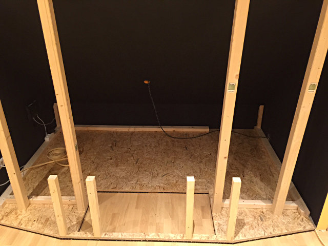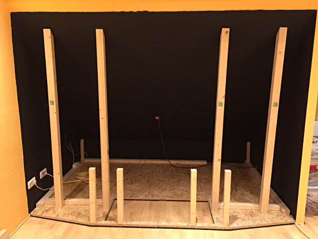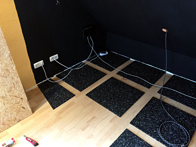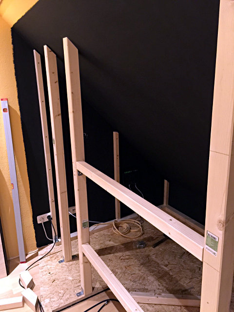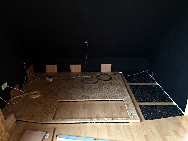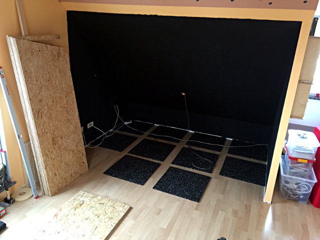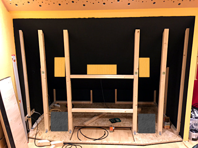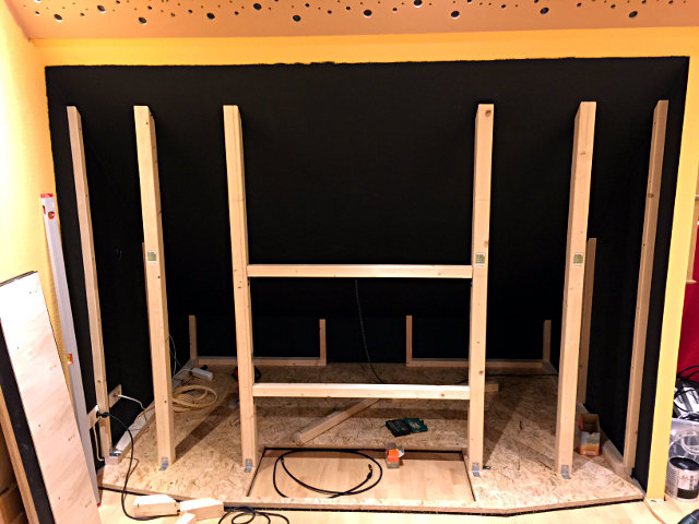 Akustikstoff verkleiden. Davor kommt der Aufbau für die