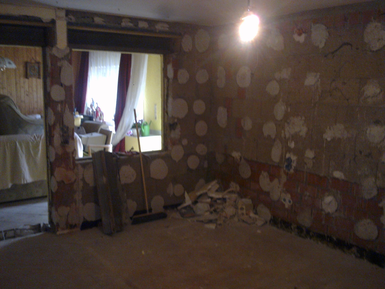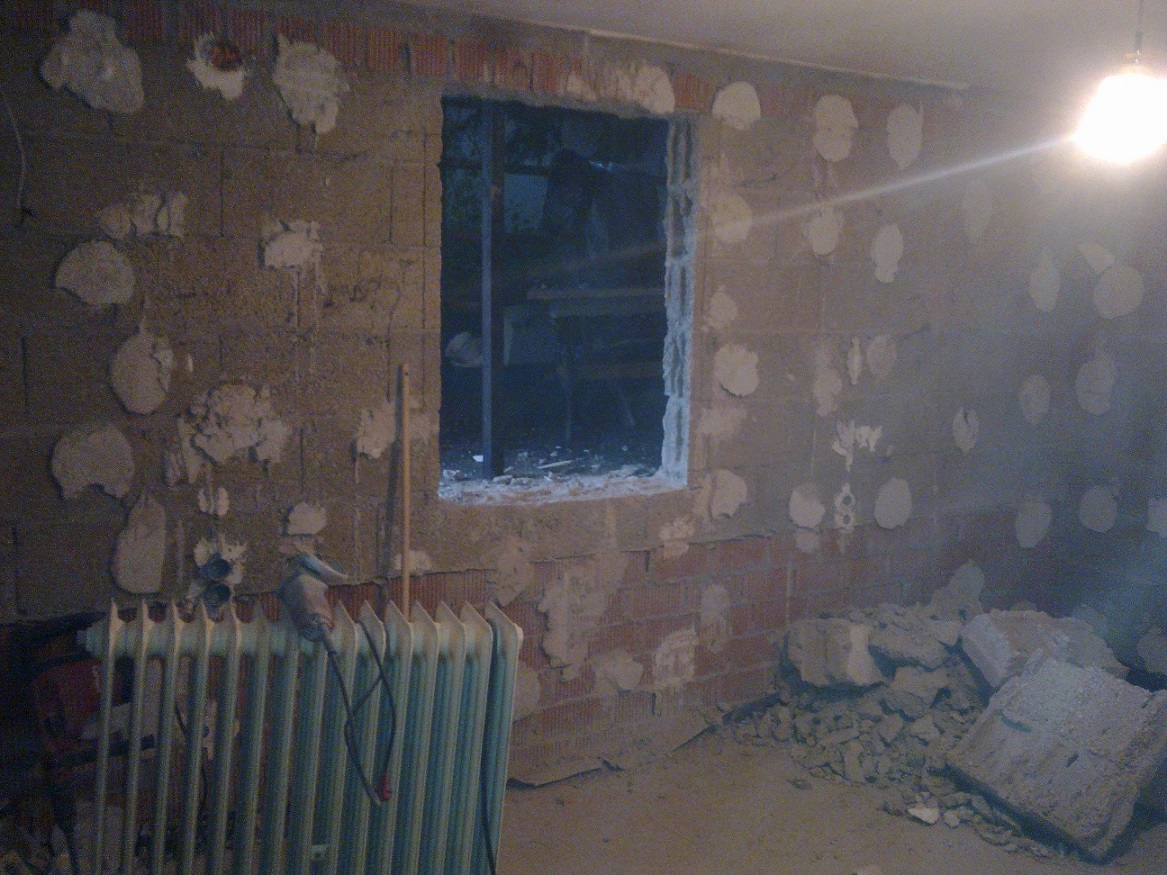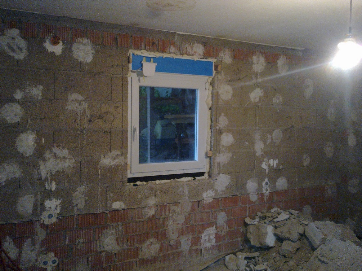 Terrassentür auch. Als nächstes Fensterloch zumauern und Öffnung