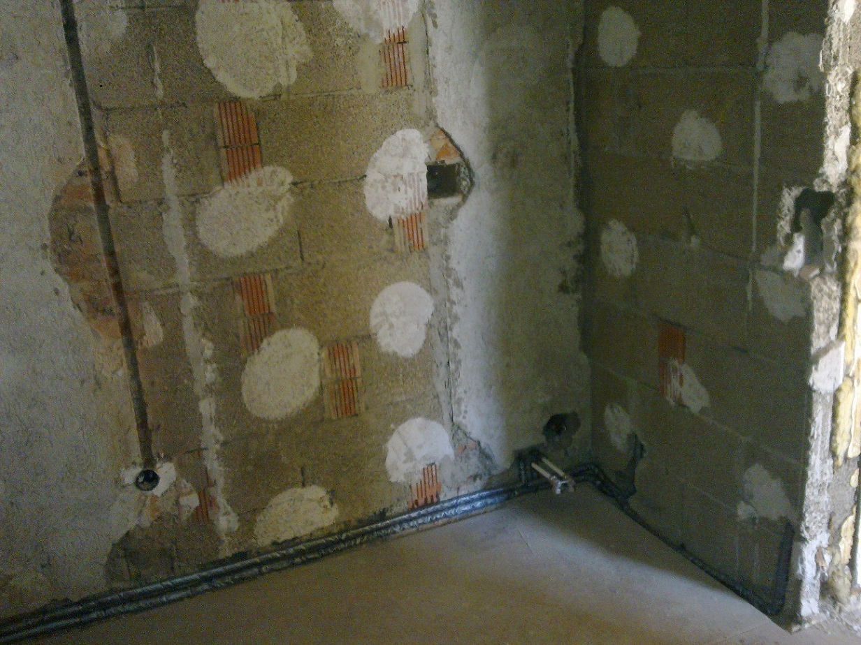 Die neuen Rohrleitungen für den Heizkörper und den